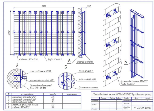 Процесс проектирования видеоэкранов разбивается на несколько этапов. К основным этапам проектирования указанной рекламной конструкции относятся: