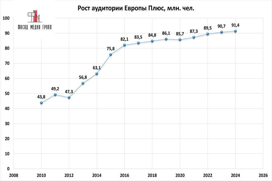 Показатели аудитории «Европы Плюс» по России: