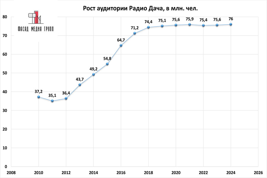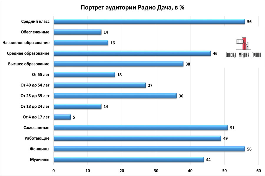 Благодаря качественному, сбалансированному контенту аудитория «Радио Дача» многочисленна и разнообразна.