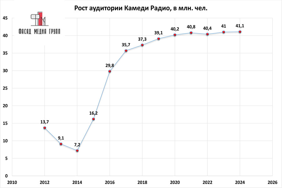 Показатели аудитории «Камеди Радио» по России: