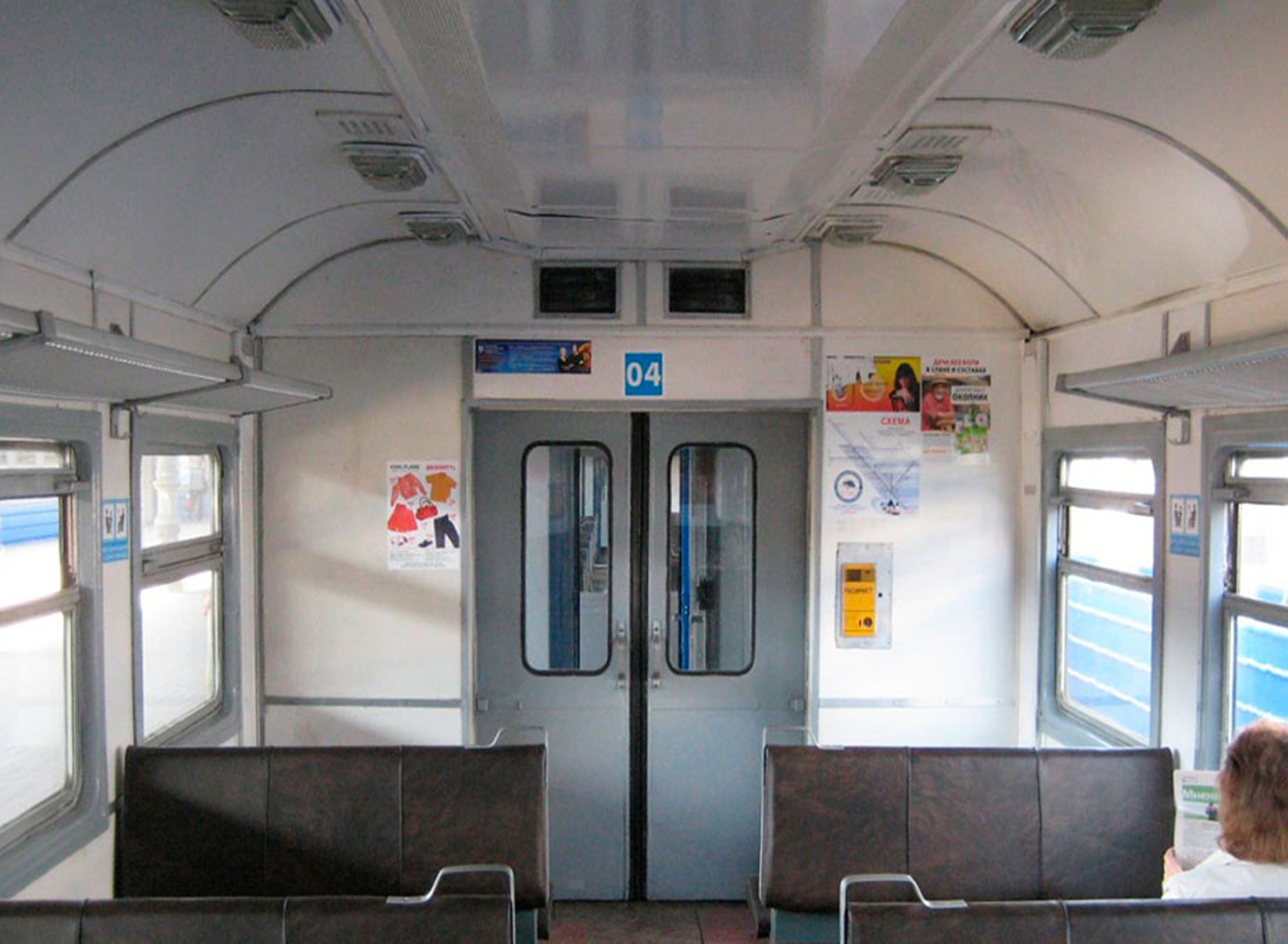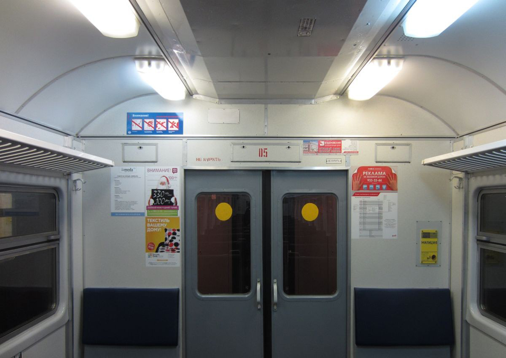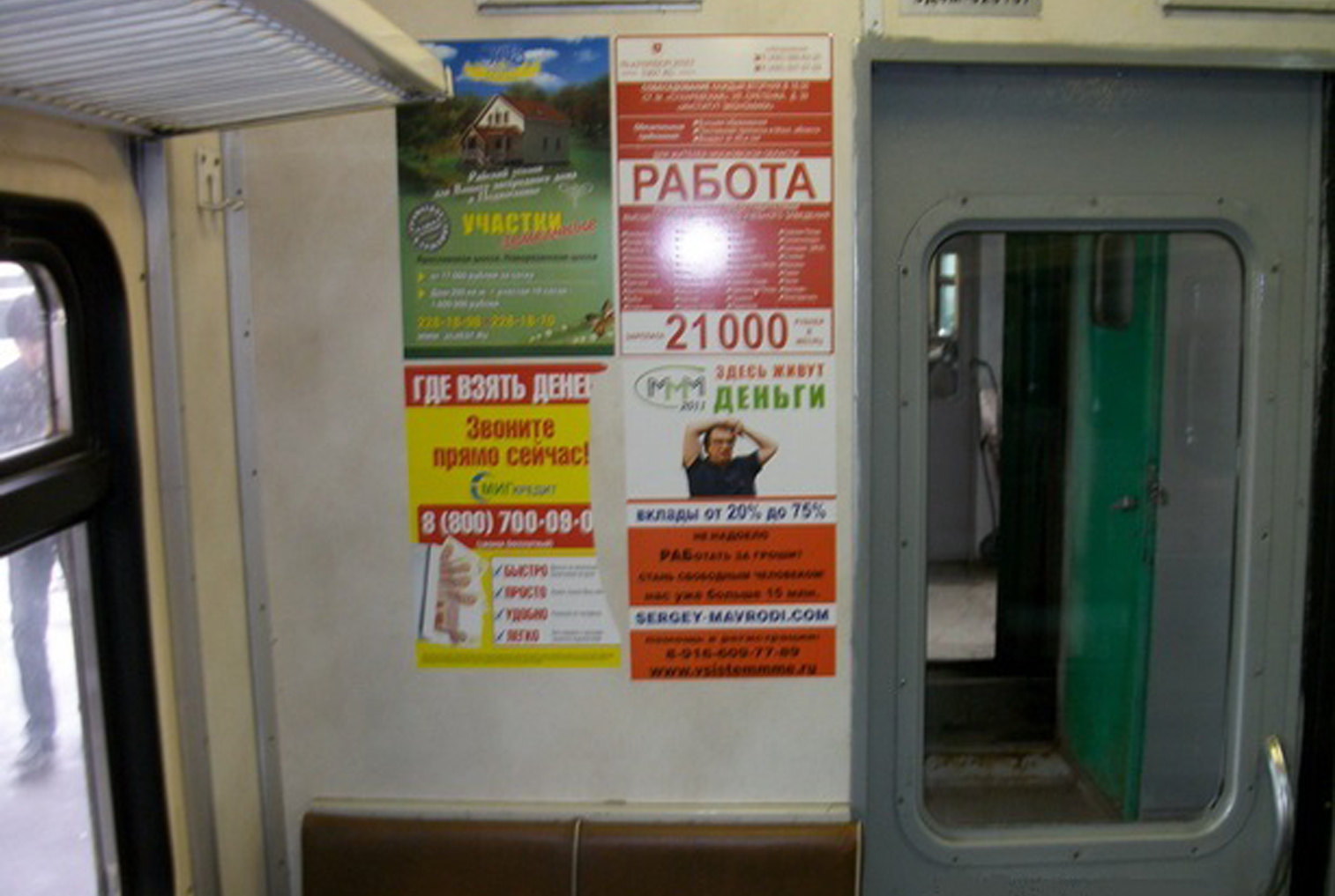 Рекламные стикеры в вагонах электрички на фото выше