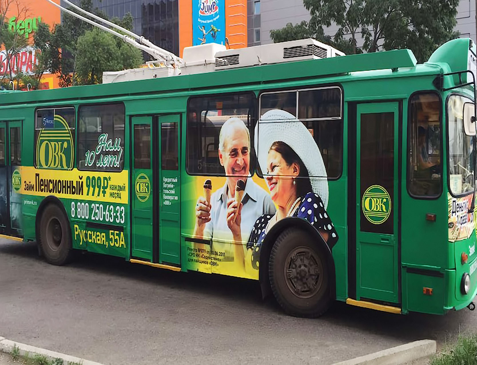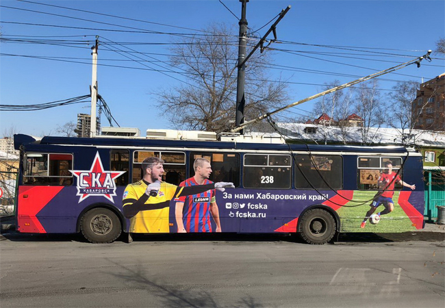 Пример брендирования троллейбуса самоклеящейся пленкой: