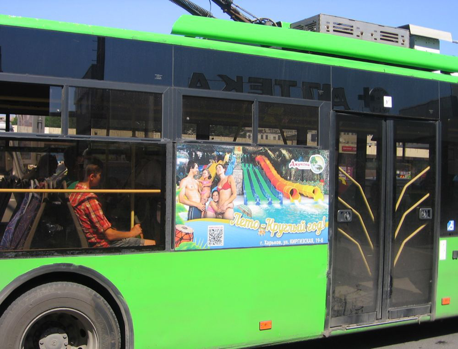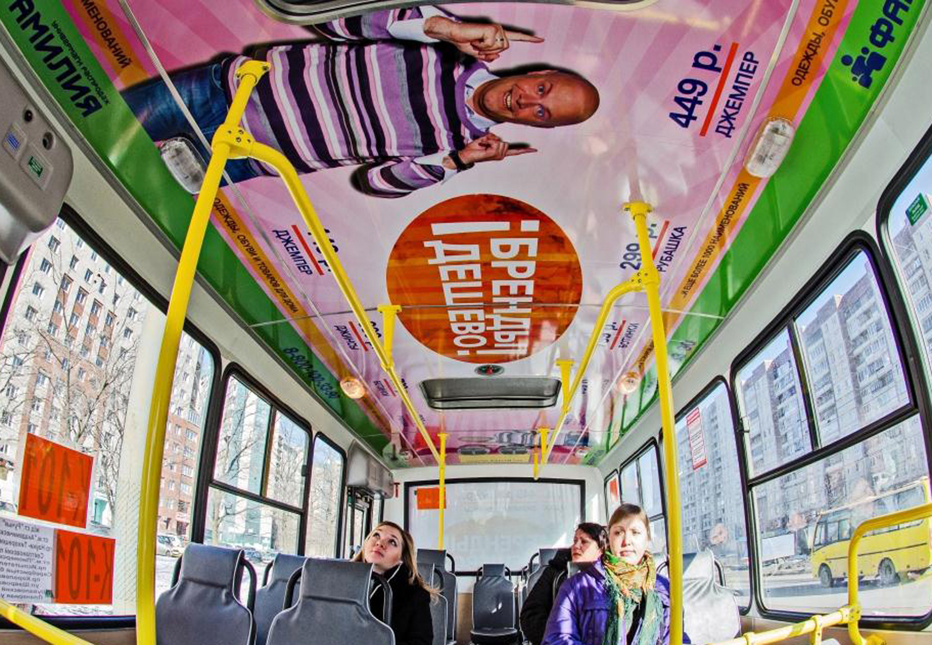 Рекламные стикеры в троллейбусе на фото выше