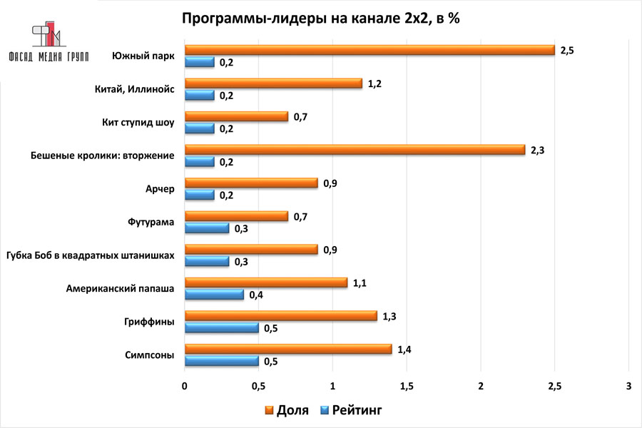 Наиболее популярный медиаконтент, выходящий в эфир на «2х2», приведен на графике: