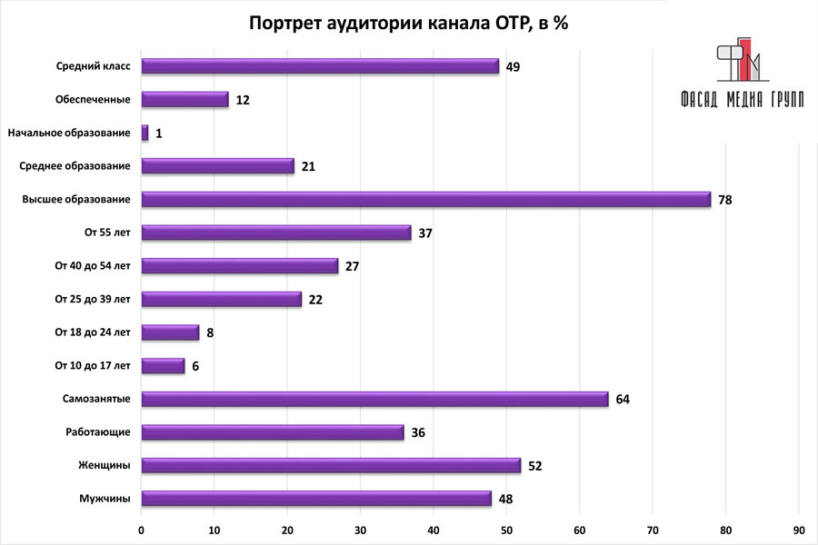 На вопрос: «Какова целевая аудитория телеканала «ОТР»? - можно указать следующее: