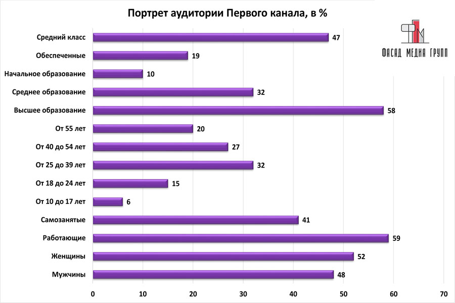 Благодаря качественному, сбалансированному контенту аудитория «Первого канала» многочисленна и разнообразна.