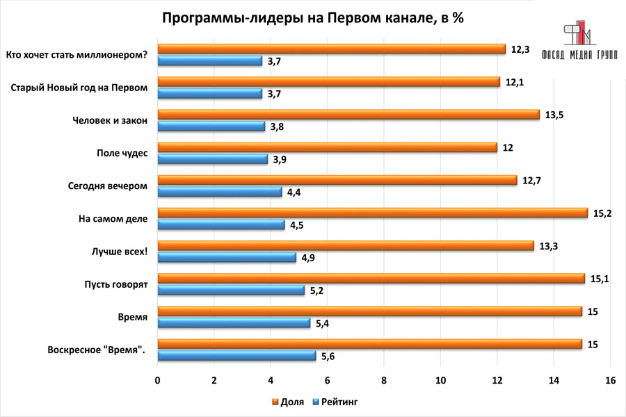 Показатели аудитории «Первого канала» по России: