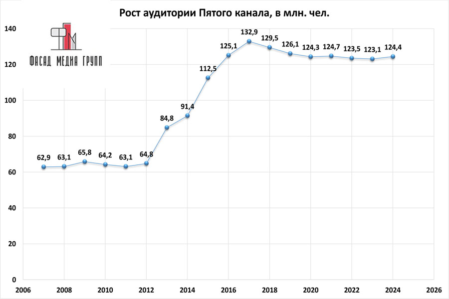Показатели аудитории «Пятого канала» по России: