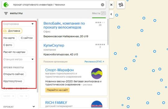 Пример приоритета в рубрике представлен 2ГИС (Двагис, ДубльГис) на фото: