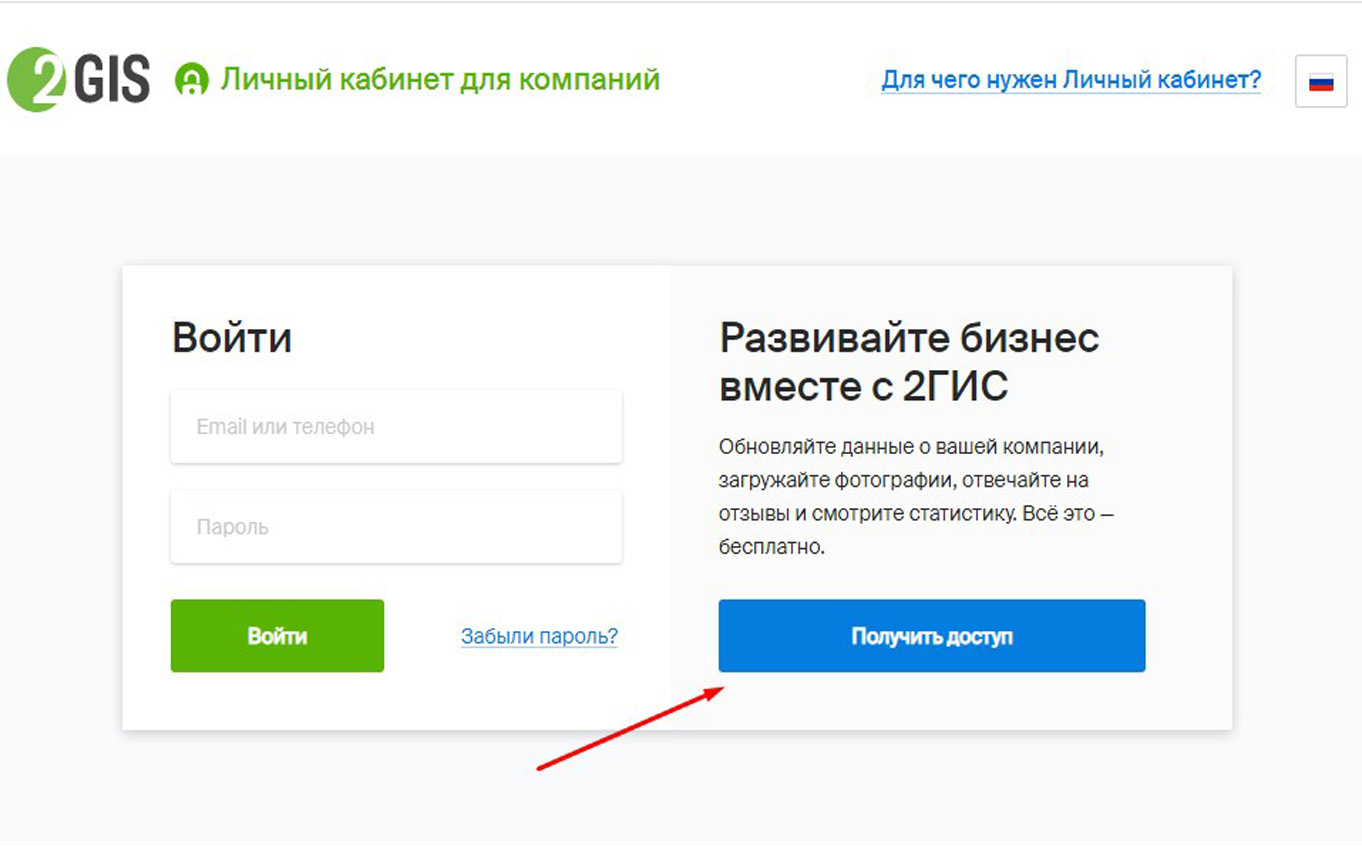 Таким образом, для настройки и продвижения рекламы в 2ГИС (Двагис, ДубльГис), необходимо создать личный кабинет. Однако, возникает вопрос: каким образом создать личный кабинет? Обычно с регистрацией проблем не возникает. Вместе с тем, приводим пошаговую инструкцию для регистрации личного кабинета в 2ГИС (Двагис, ДубльГис).