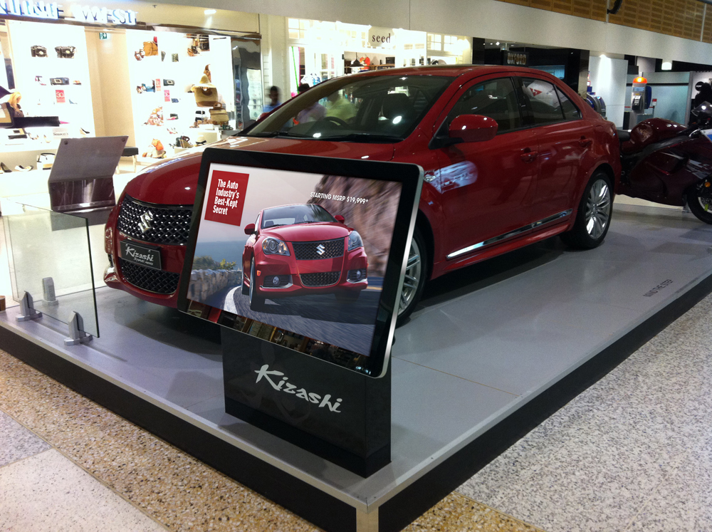 Пример напольных рекламных конструкций в автосалоне: