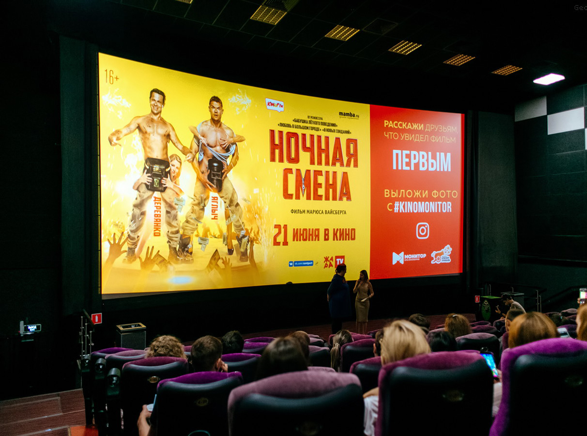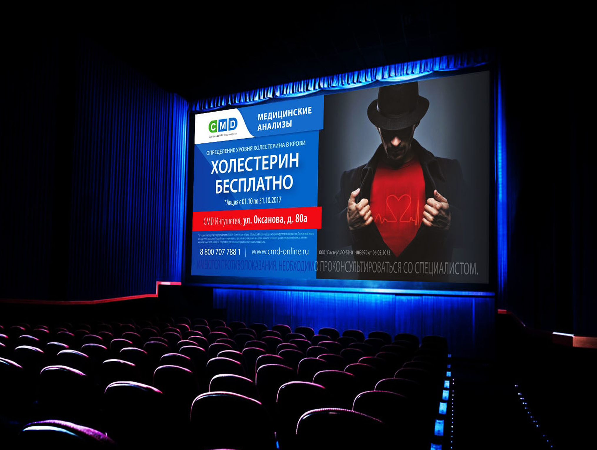 Пример рекламы на экране в кинотеатре: