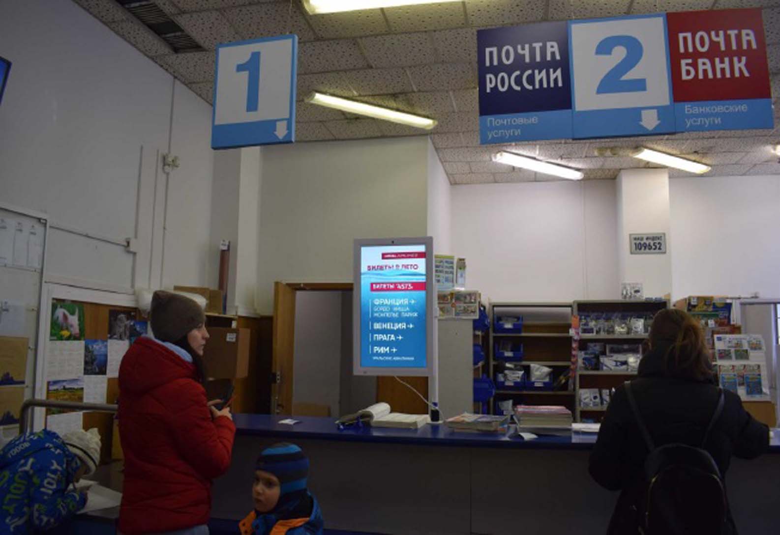 Пример рекламы на мониторе в отделении Почты России:
