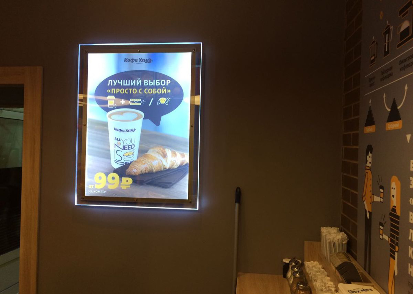 Пример рекламного лайтбокса в ресторане: